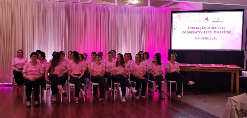 Na noite de 12 e 13 de novembro de 2024, a Coopervil e o Sicoob Vale do Vinho realizaram a solenidade de formatura das mulheres participantes da Formação do Programa Mulheres Cooperativistas, o qual iniciou em maio de 2024, com encontros quinzenais e carga horária de 96 hs; contando com o apoio do Serviço Nacional de Aprendizagem do Cooperativismo (SESCOOP/SC).