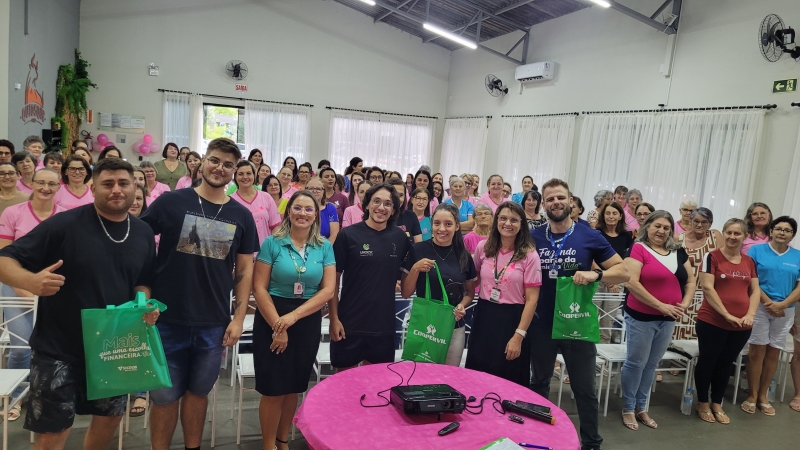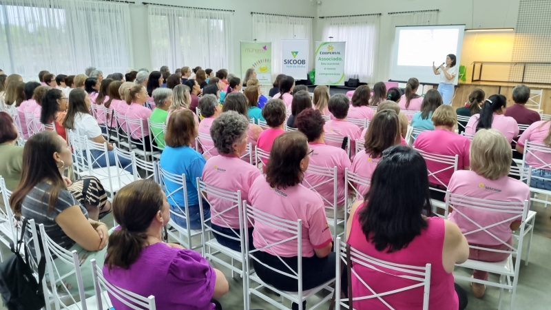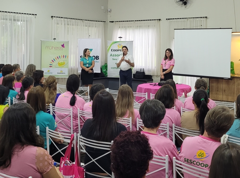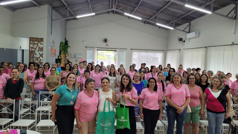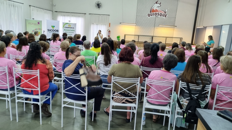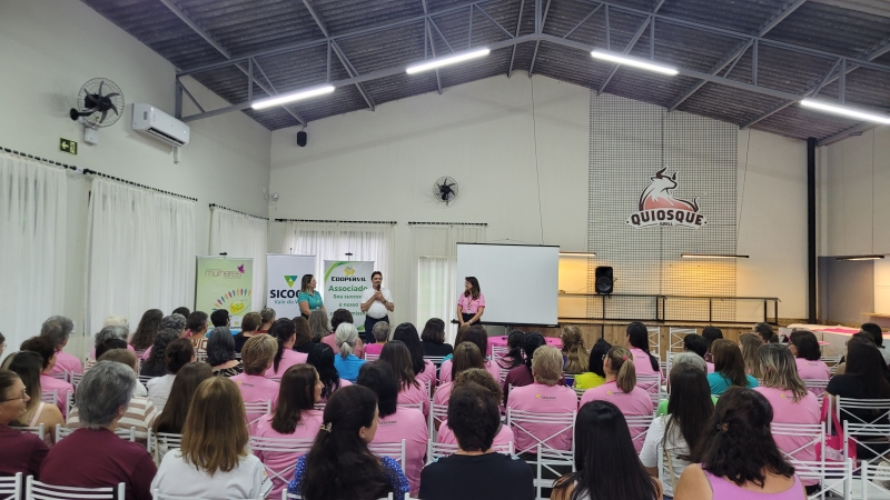 Em seguida, a psicóloga da Unimed, Larissa Rosa, trouxe reflexões valiosas sobre saúde mental e equilíbrio emocional, destacando a importância do autocuidado na rotina das mulheres. A programação também contou com a presença da empreendedora Tere Brambilla, que relatou a vida da mulher, mãe, empresária com palavras inspiradoras sobre autoestima e empoderamento feminino, também realizou demonstrações de seus produtos da Mary Kay, maquiando a integrante sorteada.