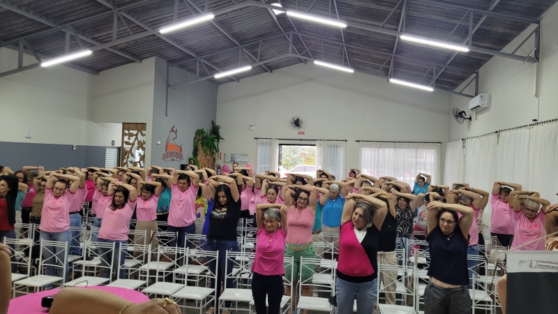 O evento proporcionou um momento de descontração e aprendizado, com diversas atividades voltadas ao bem-estar e desenvolvimento pessoal das participantes. Para iniciar a tarde com energia, os acadêmicos do curso de Educação Física da Unoesc Videira, realizaram testes e conduziram uma sessão de ginástica laboral.