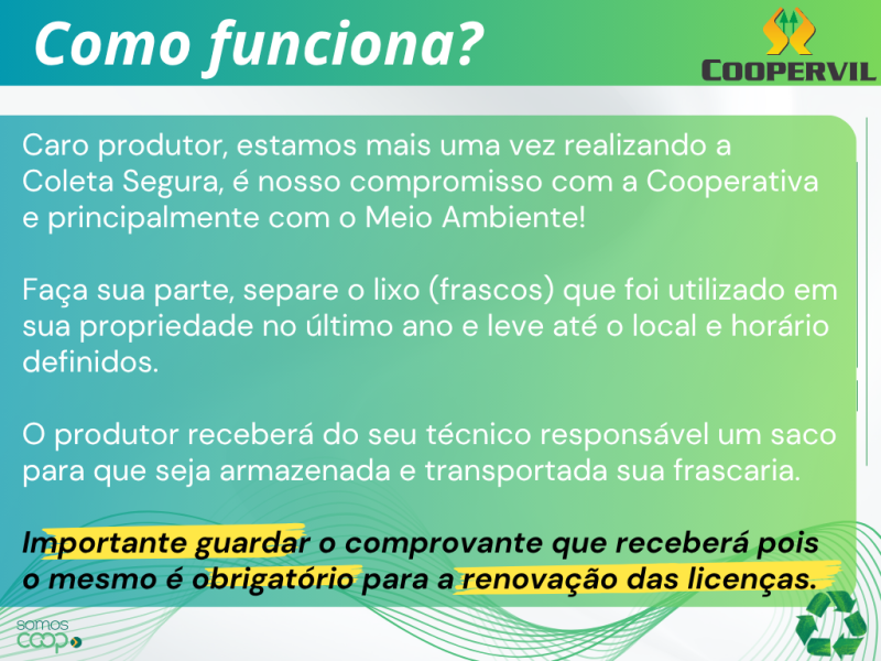 #Coopervil #AuroraCoop #ColetaSegura #SomosCoop #Sustentabilidade #MeioAmbiente #Cooperativa #AgriculturaFamiliar #CooperaComOPlaneta