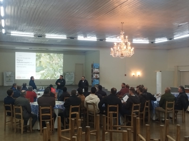 No dia 17 de julho de 2025, o Clube Fraiburguense, em Fraiburgo/SC, realizou uma importante Reunião Técnica promovida pela Coopervil em parceria com a Ihara. O evento reuniu produtores locais e também o renomado pesquisador José Itamar Boneti, onde o assunto foi o foco na cultura da maçã, abordando estratégias e práticas modernas para o manejo eficiente da fruticultura.