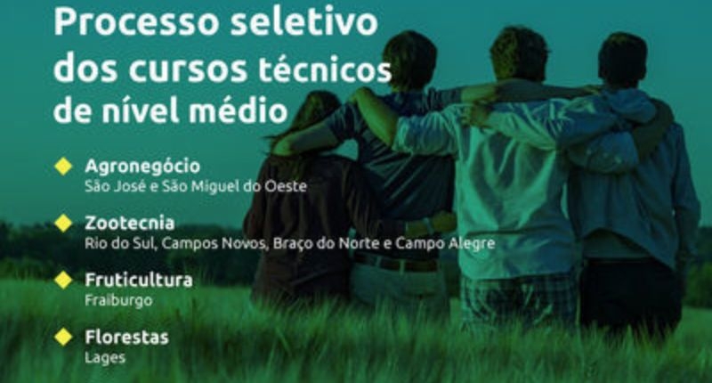 O Serviço Nacional de Aprendizagem Rural de Santa Catarina (Senar/SC) está com o processo seletivo para quatro cursos da Rede e-TEC Brasil em oito polos catarinenses. Os interessados em se candidatar precisam ter concluído o ensino médio e podem se inscrever até o dia 19 de janeiro de 2023 pelo site etec.senar.org.br.