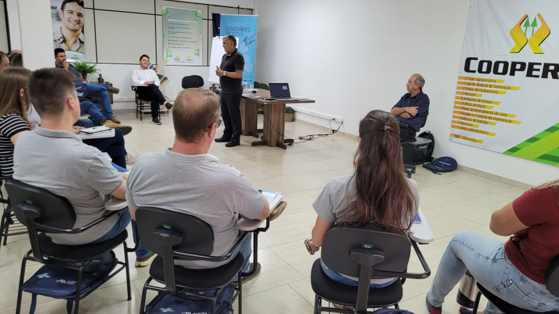 Foi realizado na sede administrativa da Coopervil no dia 14 de fevereiro de 2023, o primeiro dia da capacitação técnica do Programa Encadeamento Produtivo da Aurora Coop, com os técnicos de suínos e leite da Coopervil, ministrada pelo instrutor do Sebrae Nedir Paulo Alixandre, contando com a presença do presidente da Coopervil Luiz Vicente Suzin e do coordenador dos Programas de Qualidade da Aurora Coop Joel Pinto.