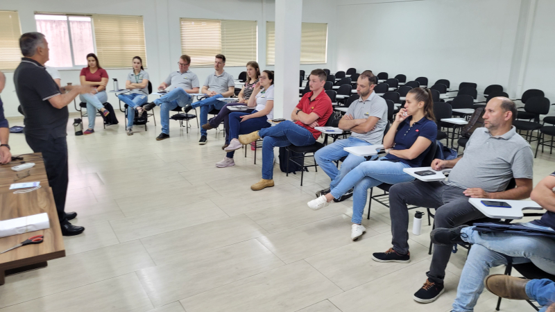 Ao todo 15 membros da equipe técnica de suínos e leite, responsáveis pela continuidade dos programas de qualidade participaram do primeiro dia de treinamento, quais estão preparados e animados para acompanhar e orientar os cooperados integrados na Coopervil.