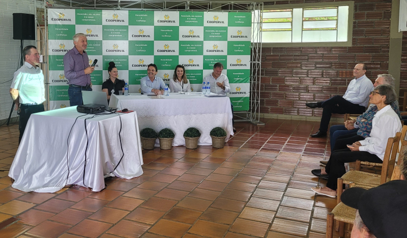 A Cooperativa Agropecuária Videirense COOPERVIL realizou, na manhã da segunda-feira dia 06 de março de 2023 a Assembleia Geral Ordinária – AGO que contou com participação dos associados, líderes, membros da direção e gerentes da cooperativa. Os assuntos foram deliberados conforme edital de convocação.