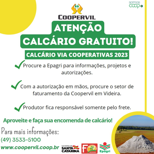 O programa TROCA TROCA DE CALCÁRIO é uma parceria da Epagri, Fecoagro e cooperativa.