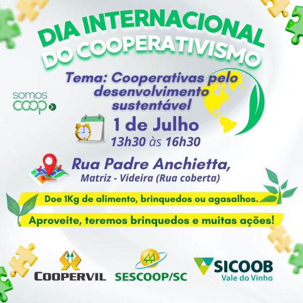 DIA INTERNACIONAL DO COOPERATIVISMO é celebrado todos os anos pelas cooperativas Coopervil e Sicoob Vale do Vinho, e esse ano não vai ser diferente.