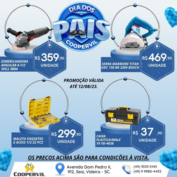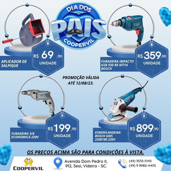 A loja de Materiais de Construção da Coopervil preparou ofertas em produtos selecionados para você arrasar no presente de dia dos Pais!