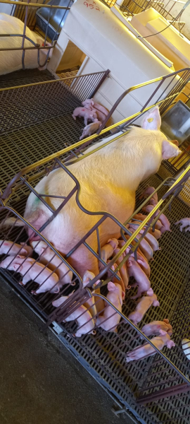 No histórico da cooperativa já chegamos a margem de nascimento de 25 leitões, porém nem todos vivos, sendo que hoje a média da nossa granja é de 15 leitões por matriz.