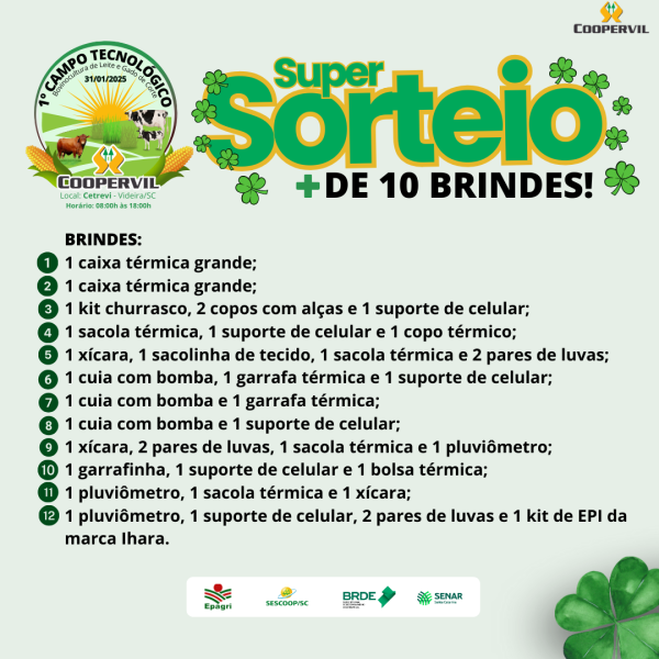 #Coopervil #SomosCoop #Sorteio #CampoTecnológico #Brindes