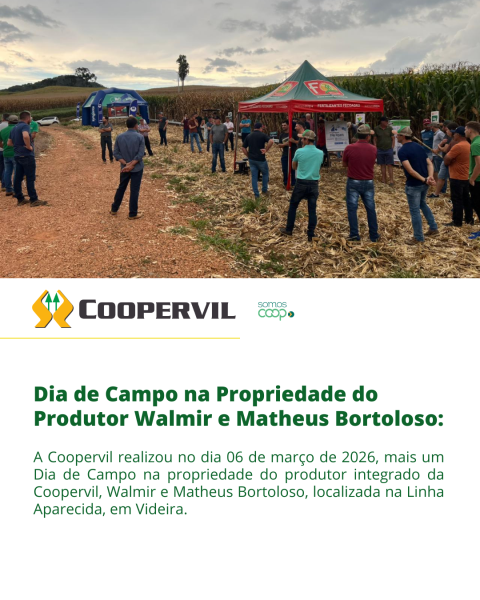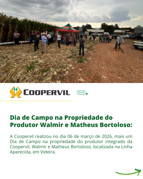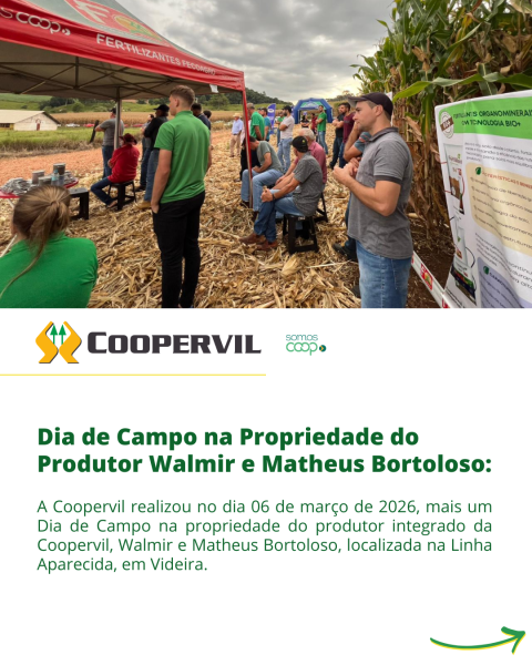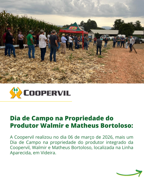 A Coopervil realizou no dia 06 de março mais um Dia de Campo na propriedade do produtor integrado da Coopervil, Walmir e Matheus Bortoloso, localizada na Linha Aparecida, em Videira.