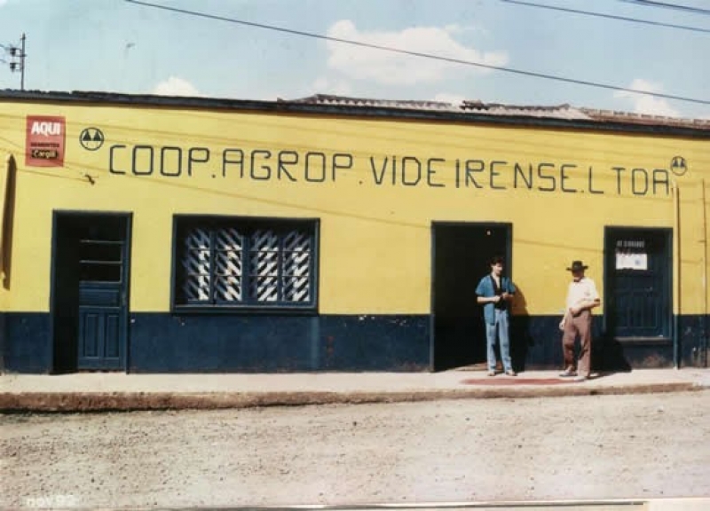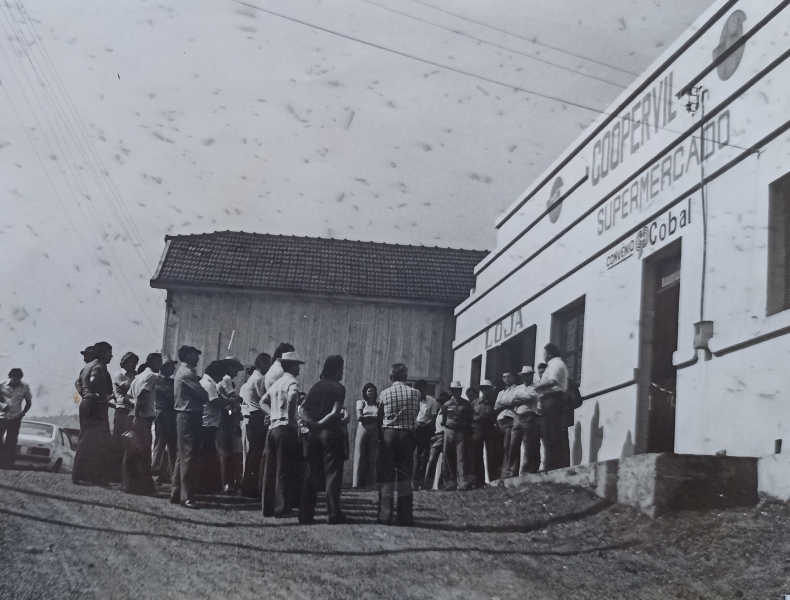 No dia 8 de novembro de 1967, um grupo de 142 produtores depositou sua confiança e força na criação de uma cooperativa que lutasse por todos, coletivamente. Na imagem, a primeira sede da Coopervil, na Rua do Comércio (atual Saul Brandalise).