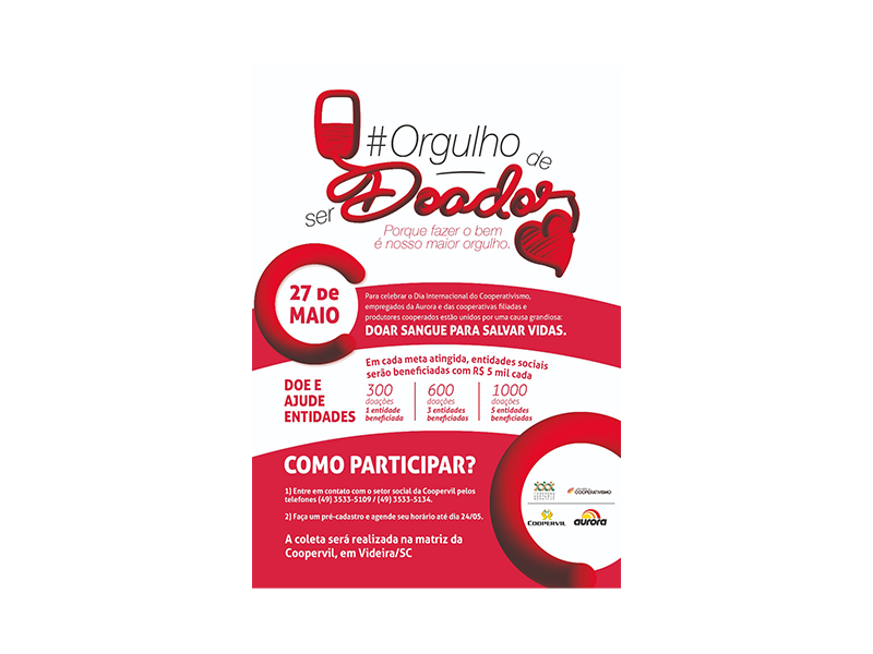 Em 2021 e 2022 a Coopervil se mobilizou para auxiliar a comunidade de uma forma diferente: com doação de sangue. Através de uma parceria com o Hemosc realizou coleta de sangue em Videira mediante agendamento para suprir o banco de sangue regional.