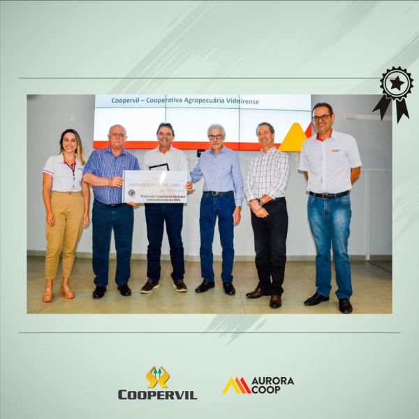 A entrega do Troféu foi feita pelo presidente da Central Aurora Coop, Neivor Canton acompanhado pelo vice-presidente e diretor de agropecuária Marcos Zordan, pelo secretário do Conselho da Aurora Coop Romeo Bet e pelo gerente de suinocultura Luiz Carlos Giongo, ao presidente da Coopervil Luiz Vicente Suzin.
