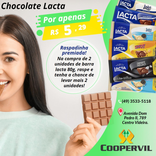 Na compra de 2 unidades de barra lacta 80g, raspe e tenha a chance de levar mais 2 unidades!