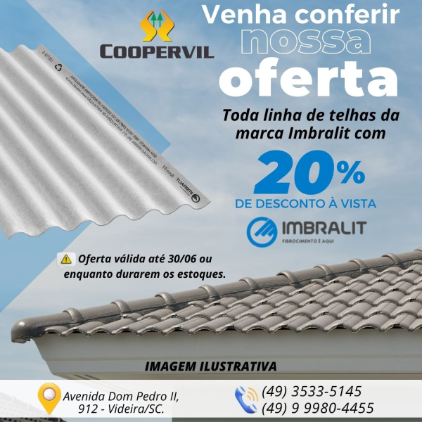 Toda linha de telhas da marca Imbralit com 20% de DESCONTO NO À VISTA!