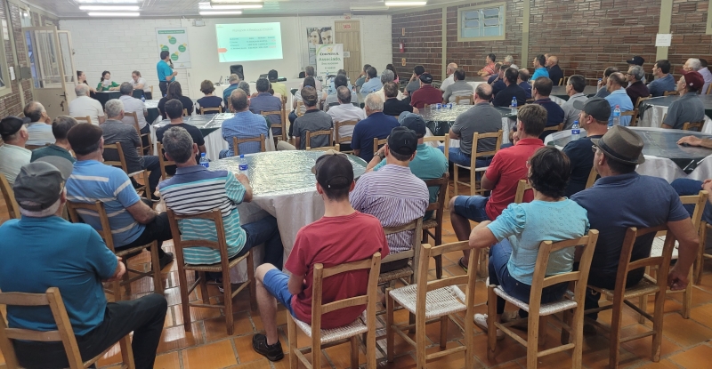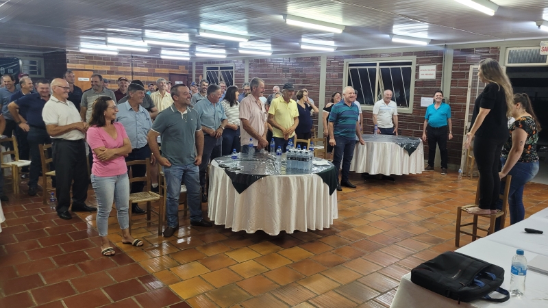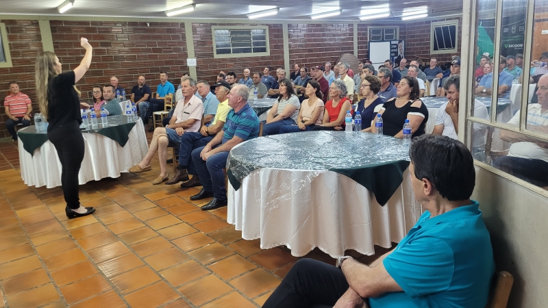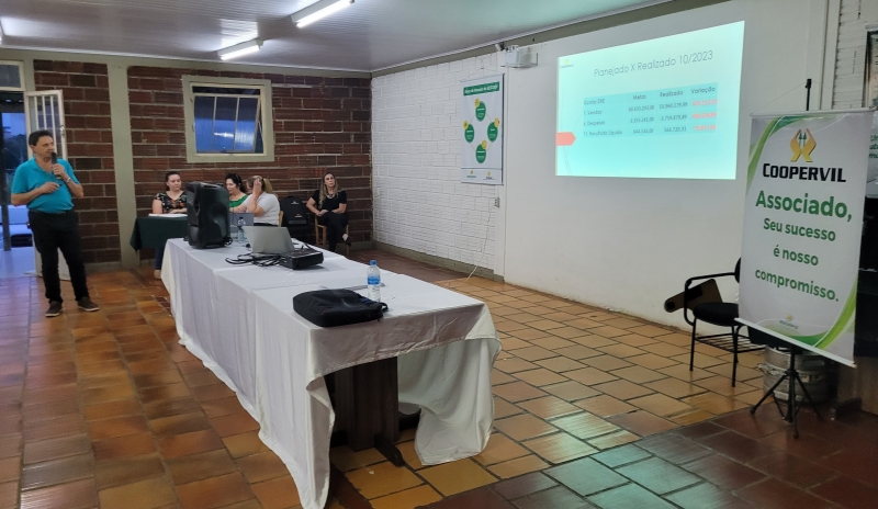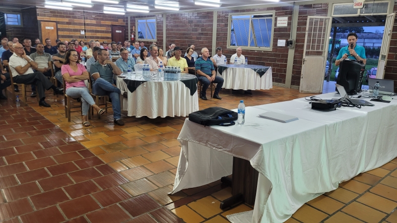 O presidente Luiz Vicente Suzin apresentou os números da cooperativa, o planejado e o realizado, mês a mês durante o ano, também a evolução dos últimos dez anos, e o percentual que cada negócio representa para a cooperativa.
