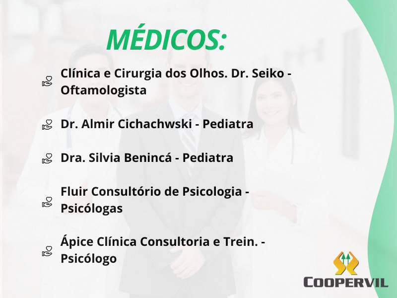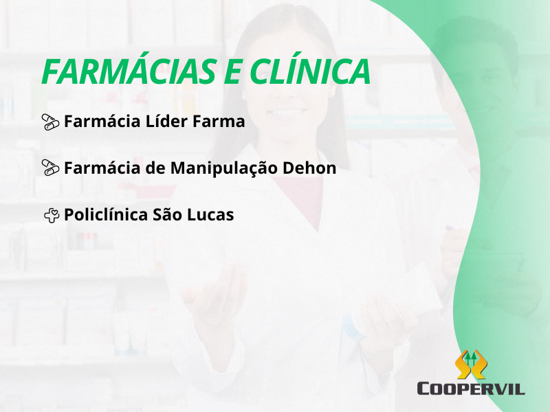 A Coopervil possui convênios com hospitais, clínicas, farmácias e médicos de Videira e Região, aproveite!!