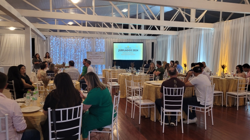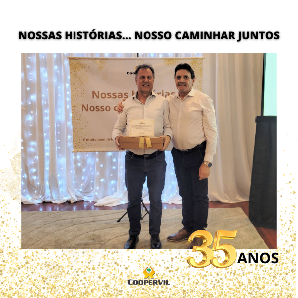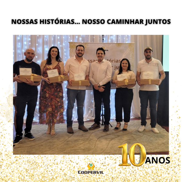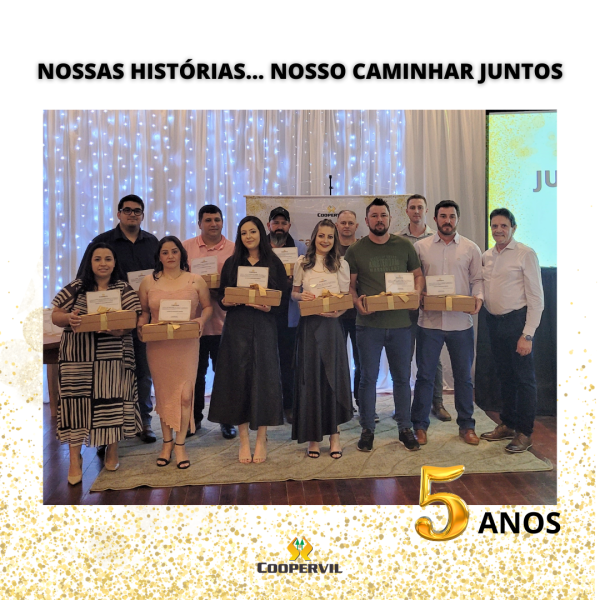 Os colaboradores foram homenagem com 05, 10, 15, 20 e 35 anos de história na Coopervil, pois fazem parte de uma jornada de crescimento e desenvolvimento junto ao sistema cooperativista.