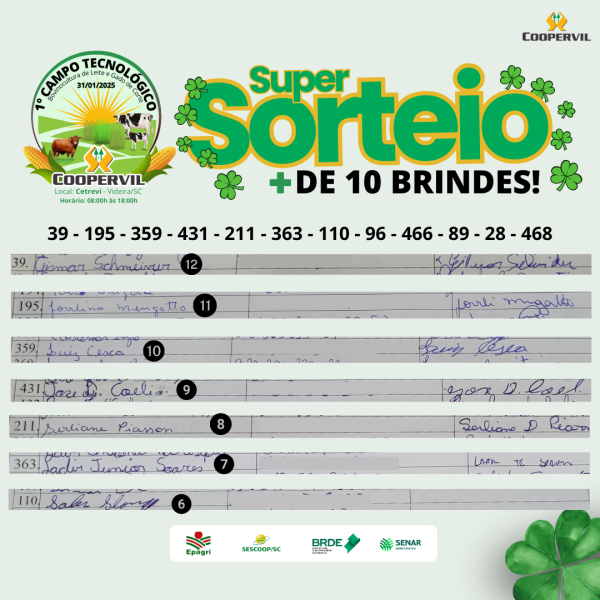 #Coopervil #SomosCoop #Sorteio #CampoTecnológico #Brindes