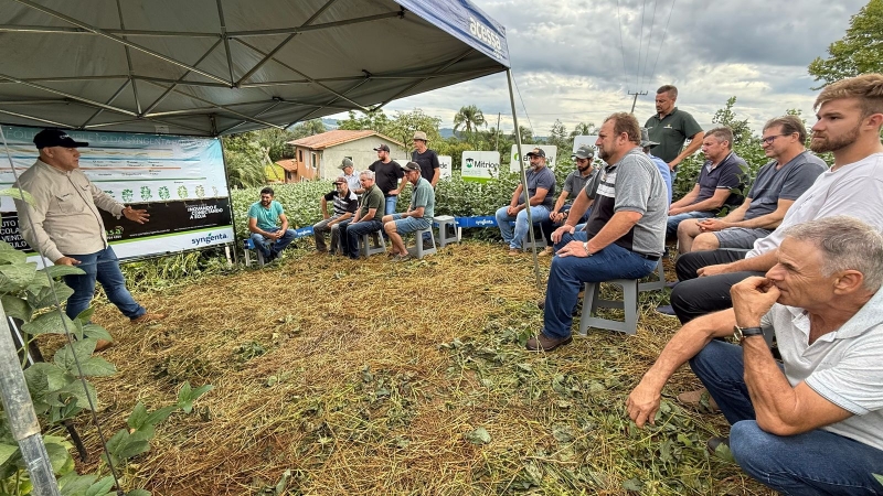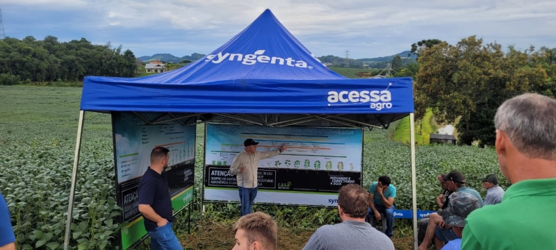Na tarde do dia 19/02/2025 foi realizado, na propriedade de Lino Retore, em Linha Santa Lúcia - Videira/SC, o dia de Campo sobre Cultura da Soja, qual contou com a presença de produtores de soja da região e a parceria das empresas Syngenta, Nidera Sementes e Fecoagro.