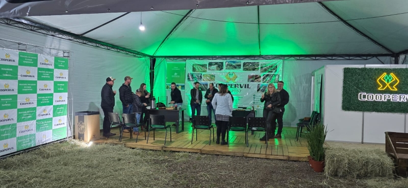 A COOPERVIL esteve presente com um estande externo, preparado para receber associados, clientes e visitantes. O espaço foi pensado para proporcionar um ambiente de relacionamento, troca de experiências e valorização do cooperativismo, reforçando o compromisso da cooperativa com a comunidade onde está inserida.