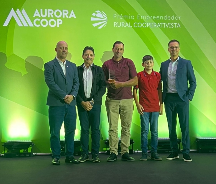 O empresário rural Clodomir Piasson da comunidade de Camboim (Videira) conquistou o segundo lugar no nível Aurora Coop, qual trabalha com leite e suínos na sua empresa rural. Clodomir acompanhado pelas duas filhas que estão na propriedade destaca o orgulho de receber o reconhecimento da Aurora, qual possuem um número muito grande de integrados. Para o presidente Luiz Vicente Suzin, o reconhecimento é merecido pois a família participa das capacitações que a cooperativa oferece, e, aplica o aprendizado na propriedade, sendo que os resultados dos produtos são excelentes. Parabenizamos os três produtores finalistas e convidamos para que mais associados integrados participem dos programas que a cooperativa oferece e assim aplicá-los, para obter um bom resultado.
