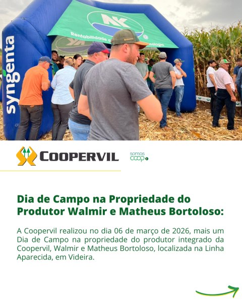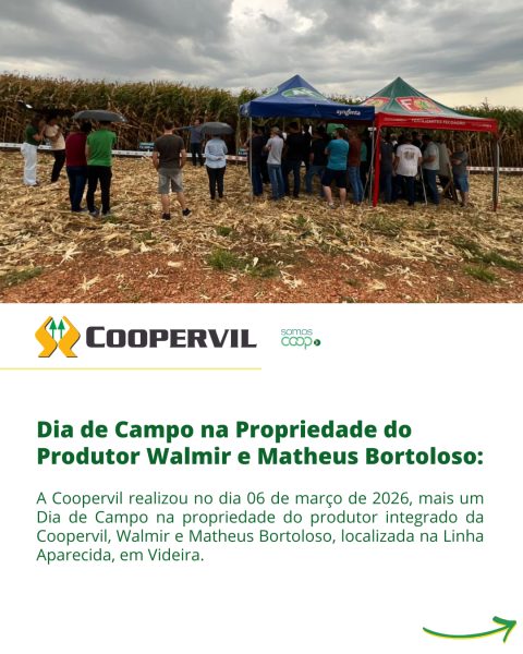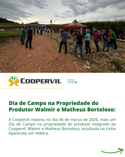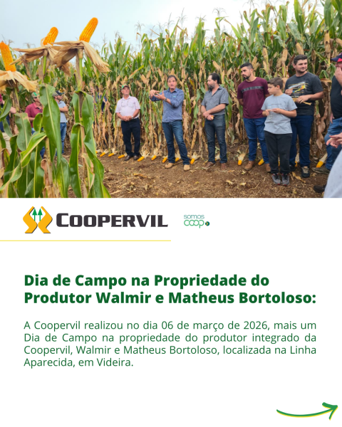 A Coopervil realizou no dia 06 de março mais um Dia de Campo na propriedade do produtor integrado da Coopervil, Walmir e Matheus Bortoloso, localizada na Linha Aparecida, em Videira.