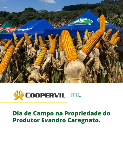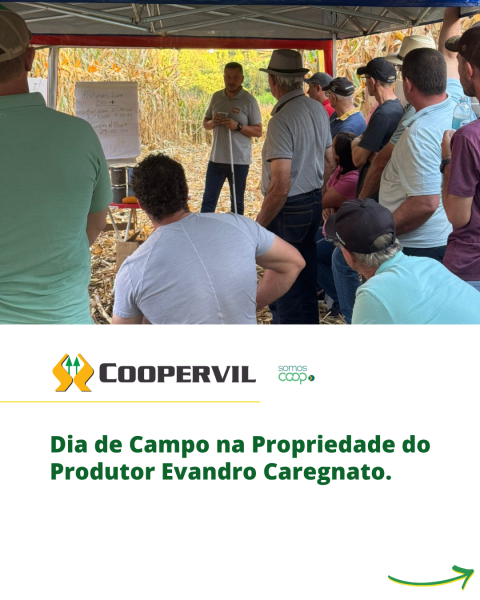 No dia 31 de março de 2026, a Coopervil realizou um Dia de Campo na propriedade do produtor Evandro Caregnato, na Linha Etelvina, em Videira/SC, reunindo produtores, técnicos e parceiros para a troca de conhecimentos e apresentação de novas tecnologias voltadas ao aumento da produtividade no campo.