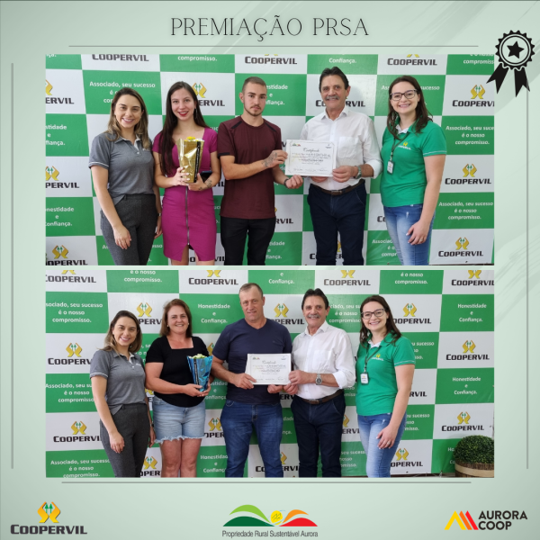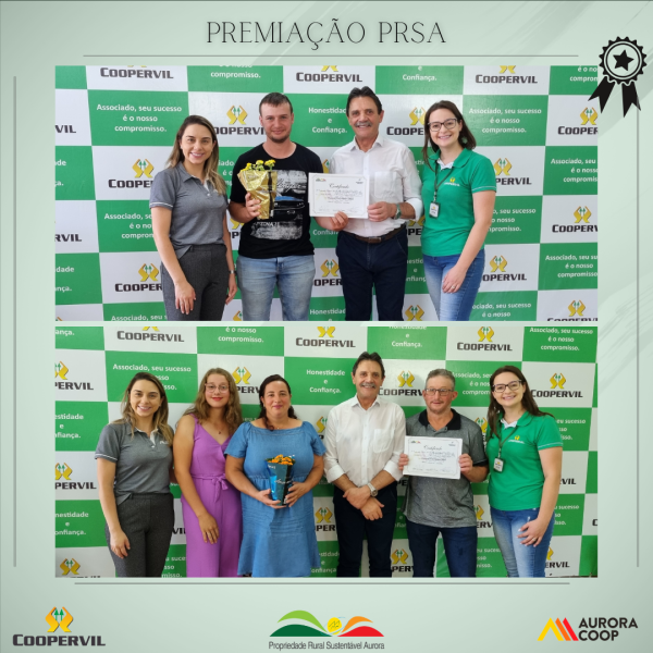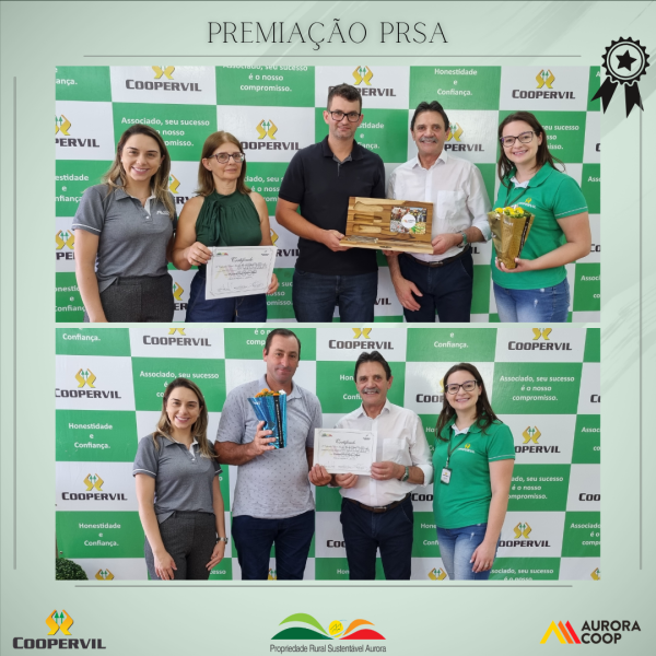 O ato de premiação foi conduzido pela coordenadora social Suzana Araldi e a entrega foi realizada pelo presidente Luiz Vicente Suzin, pela coordenadora do PRSA na Coopervil Ligiane Carinhato e pela representante da Aurora a supervisora Maiquieli Deon representando o coordenador do PRSA da Aurora Coop, Sandro Luiz Tremea, sendo que os produtores receberam a certificação, brindes e valores conforme o desempenho e atendimento aos critérios.